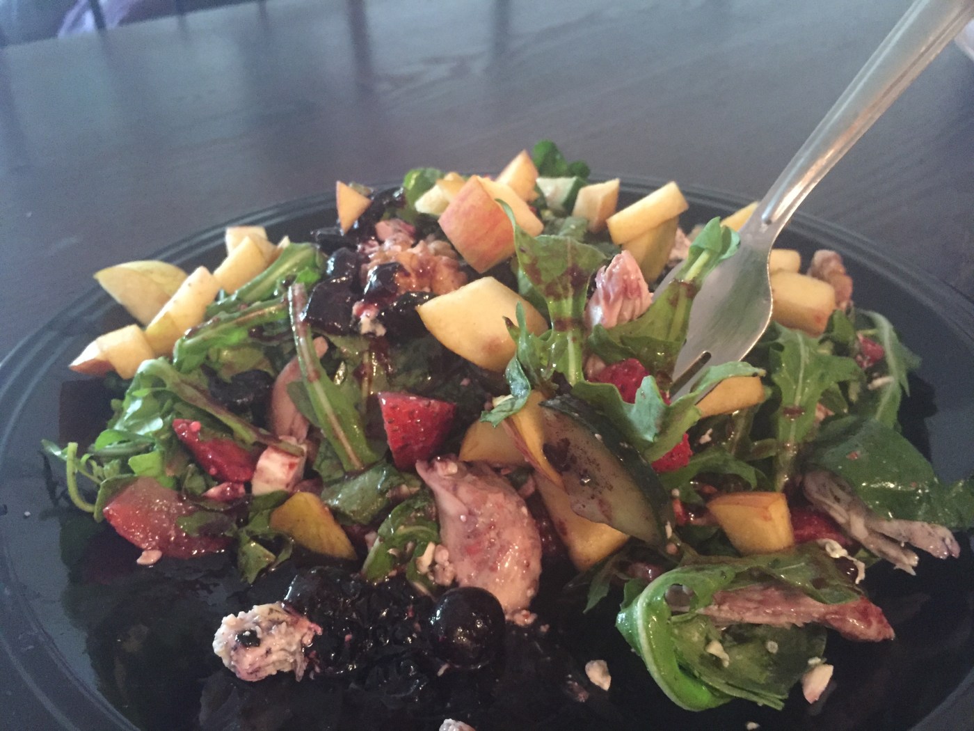 So here’s a salad filled with summer berries, rotisserie chicken, and a few extras. And of course, it pairs wonderfully well with my blueberry vinaigrette! Link here: Blueberry Vinaigrette