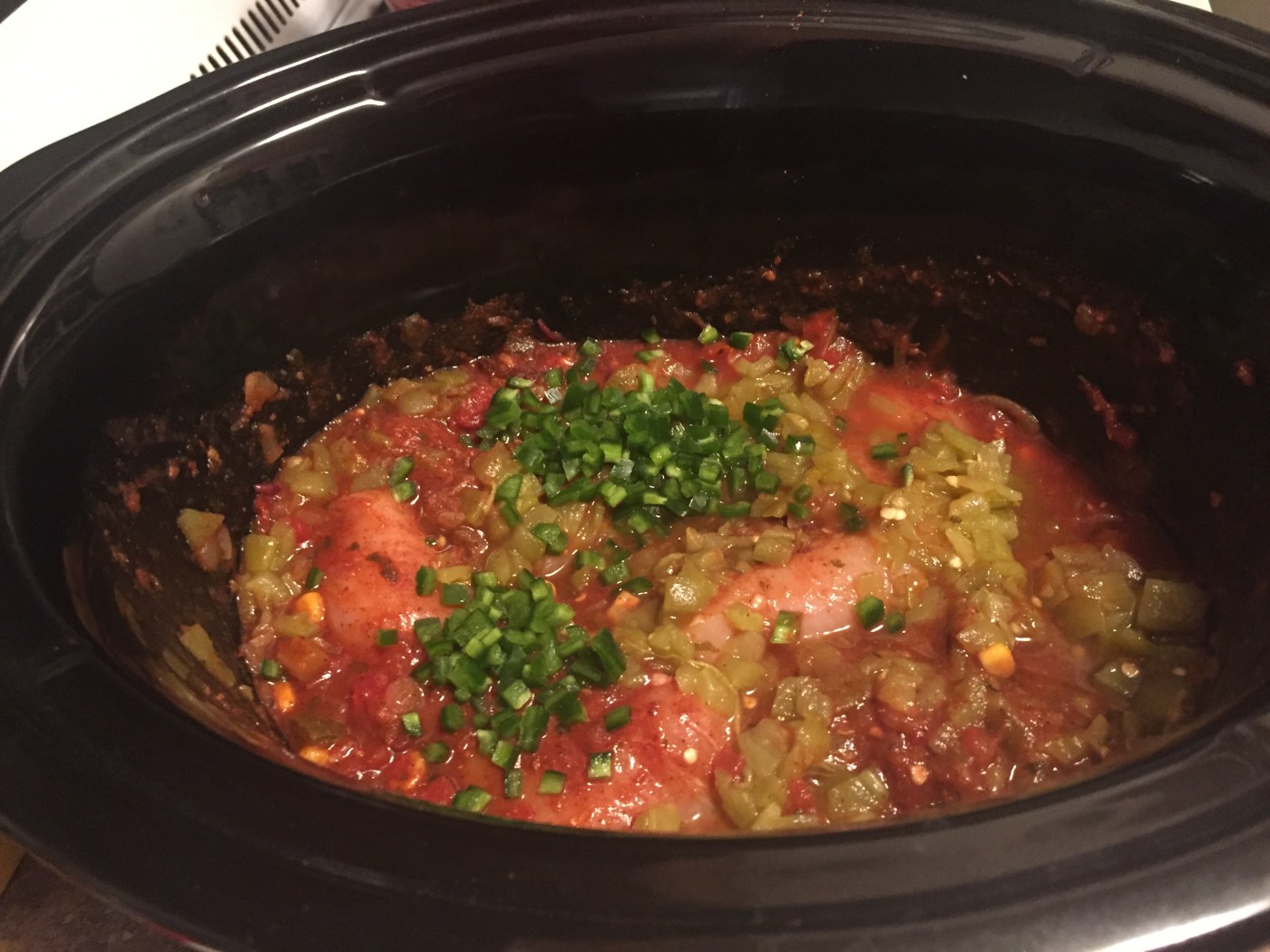 - Place the chicken in your slow cooker. Season on all sides with spice blend.