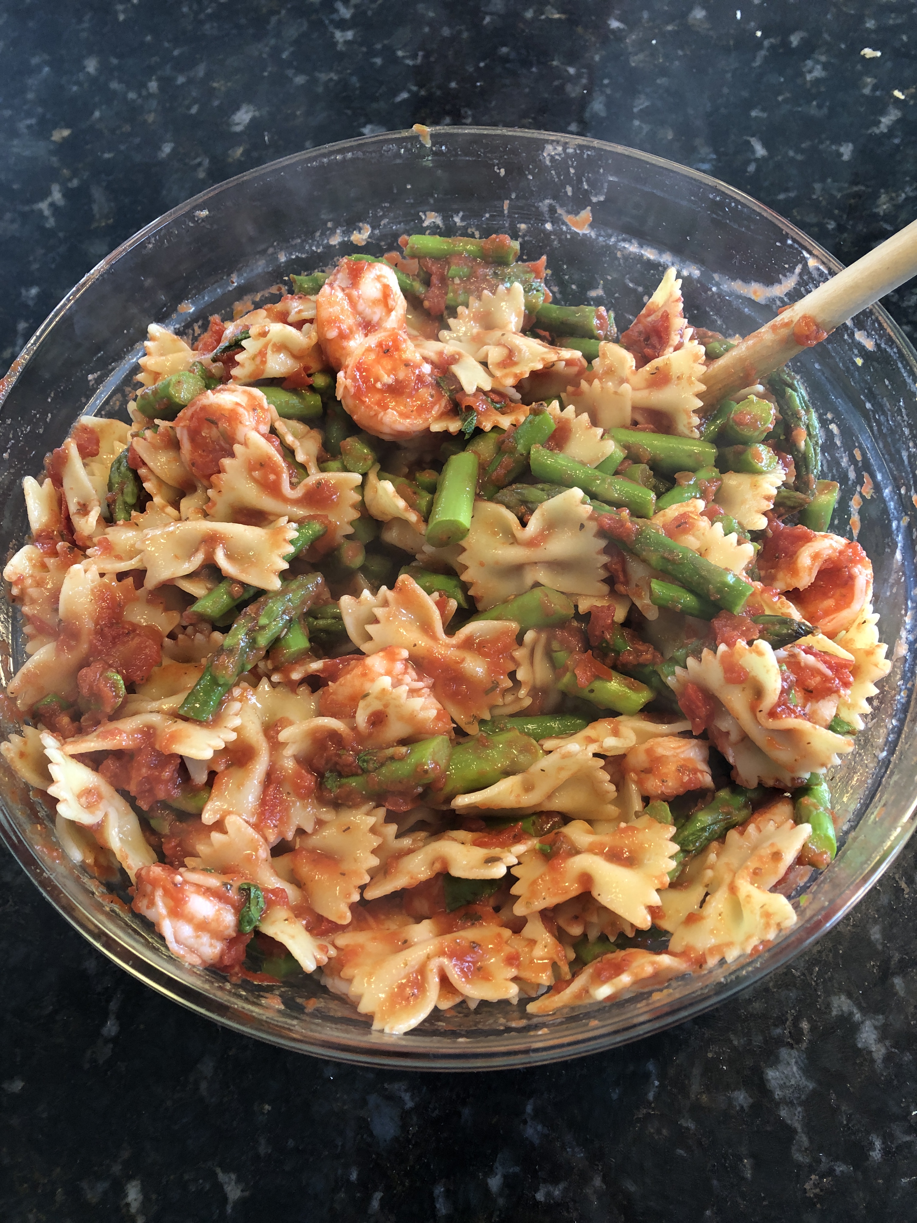 Easy and healthy come together in this quick pasta recipe! Use the same pot for the asparagus, pasta, and shrimp and then mix it up with a batch of Marinara Sauce for an easy lunch or dinner recipe. Make the marinara sauce ahead of time and refrigerate or freeze to cut out even more time. Enjoy!