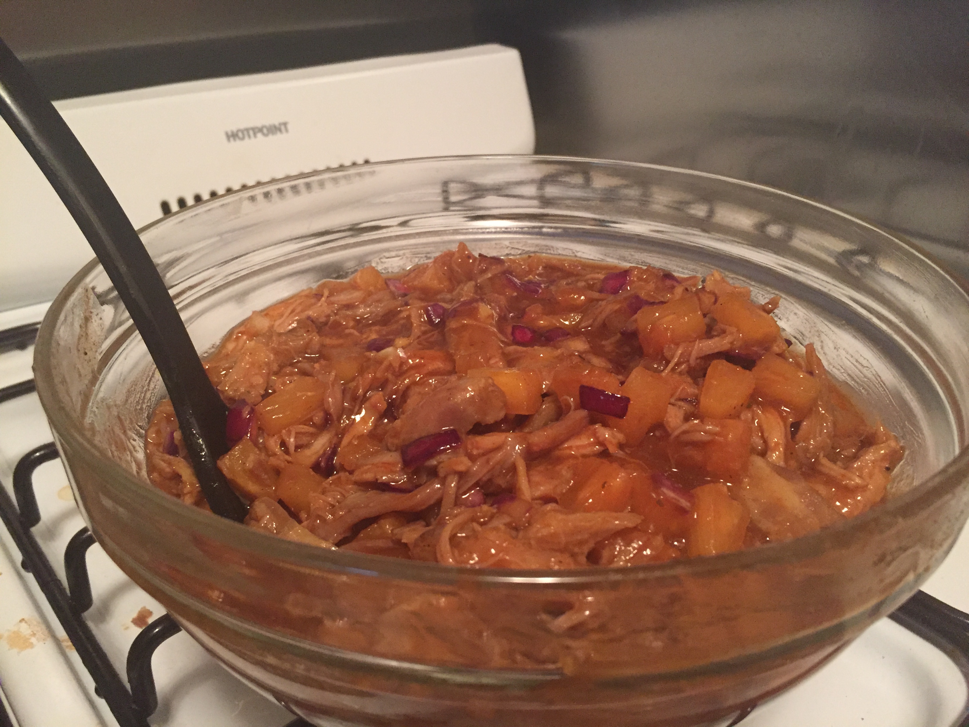 This recipe cooks slowly for nine hours, simmering together seasoned pork, barbecue sauce, and pineapple. Toss in a few other spices and you have an easy recipe that yields a huge amount of food and is guaranteed to be a crowd pleaser! So set your slow cooker and watch this meal come together. Added bonus: your kitchen will smell amazing!