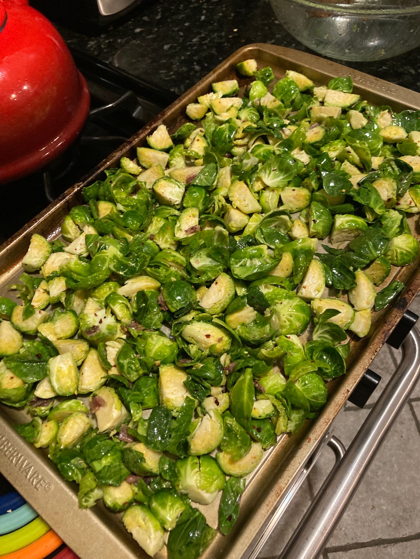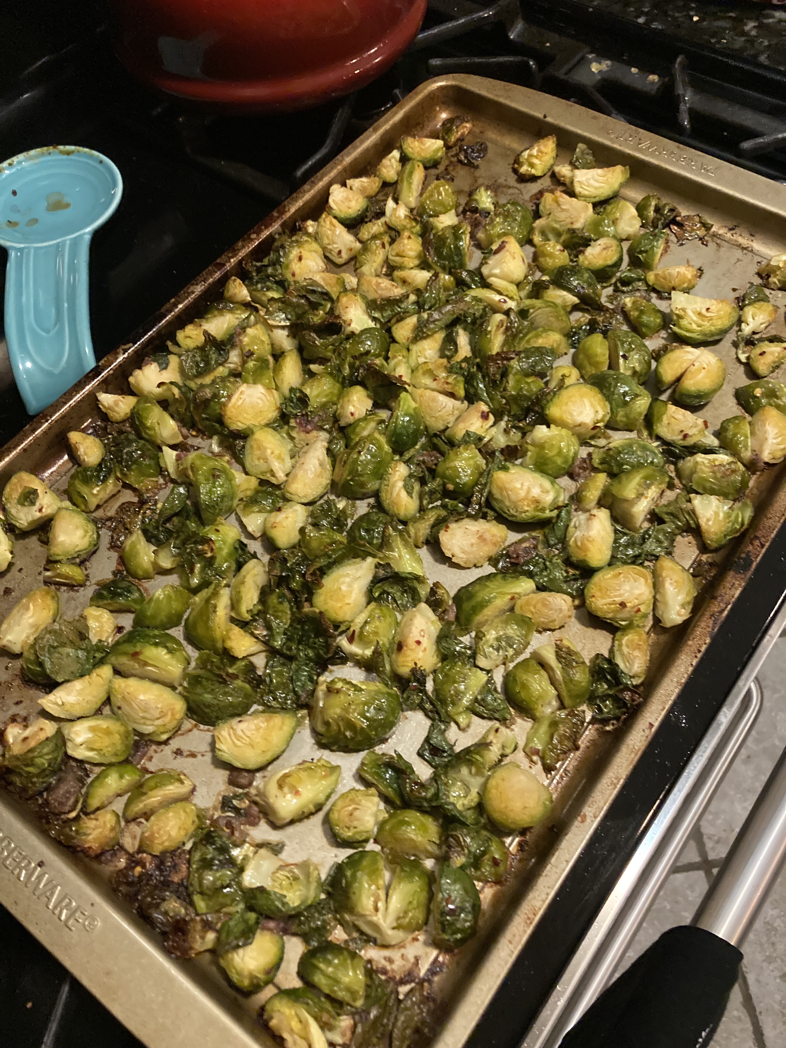 Brussels sprouts have a bad reputation but when made properly they are delicious! My favorite method is roasting with olive oil, anchovies, salt and pepper, and a big glug of olive oil. These are great as a side to any wintry meat dish. Enjoy!